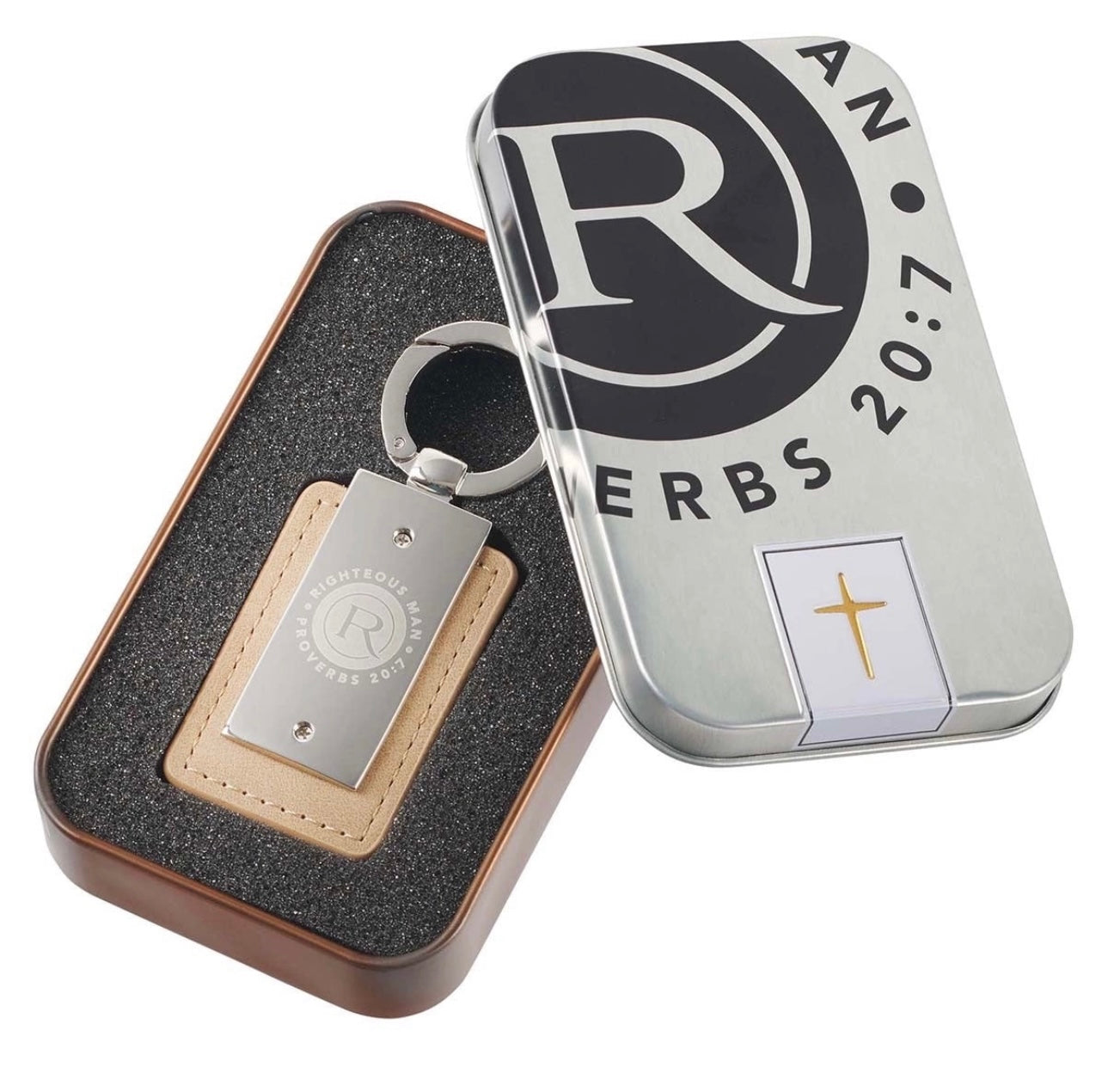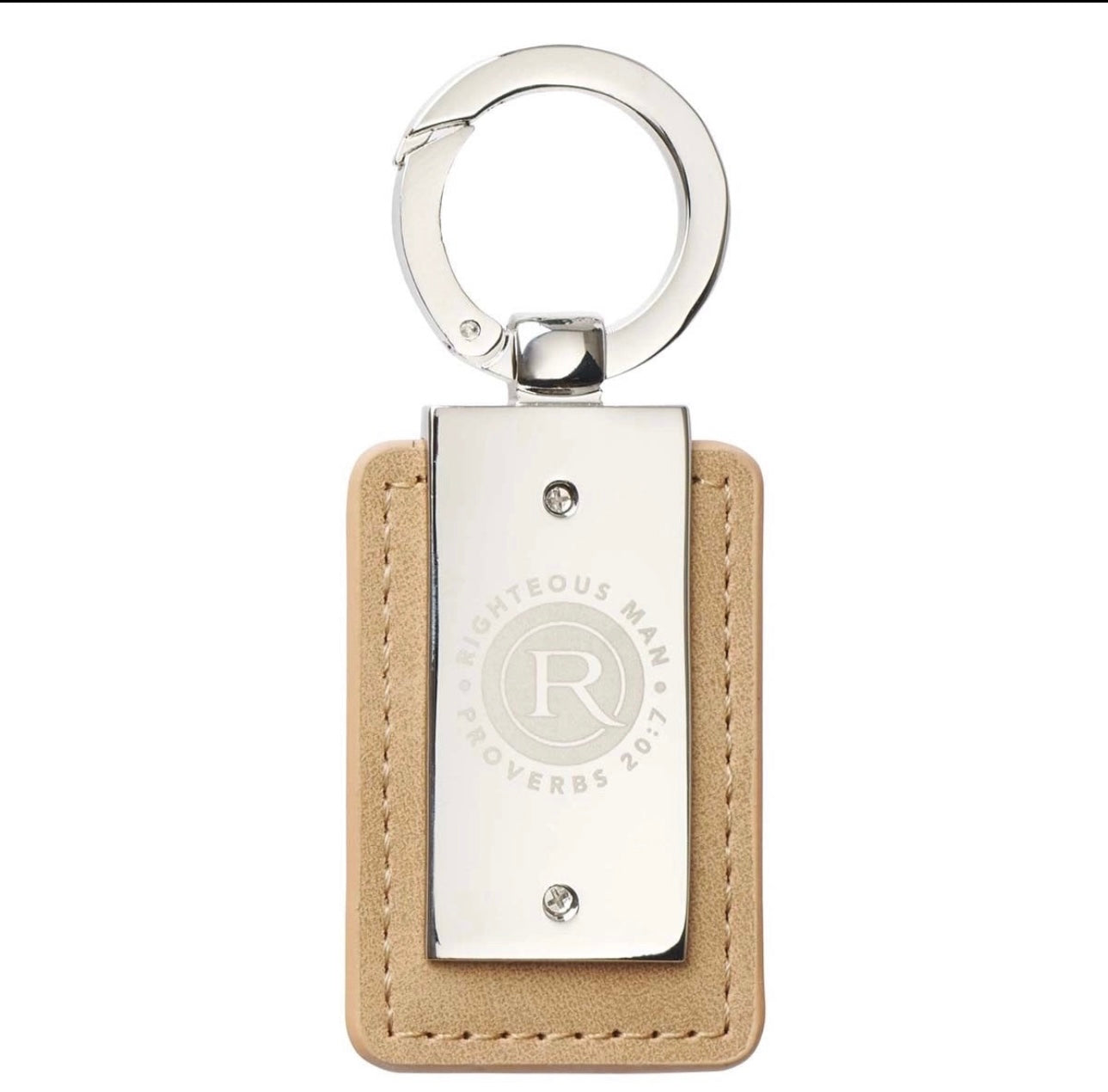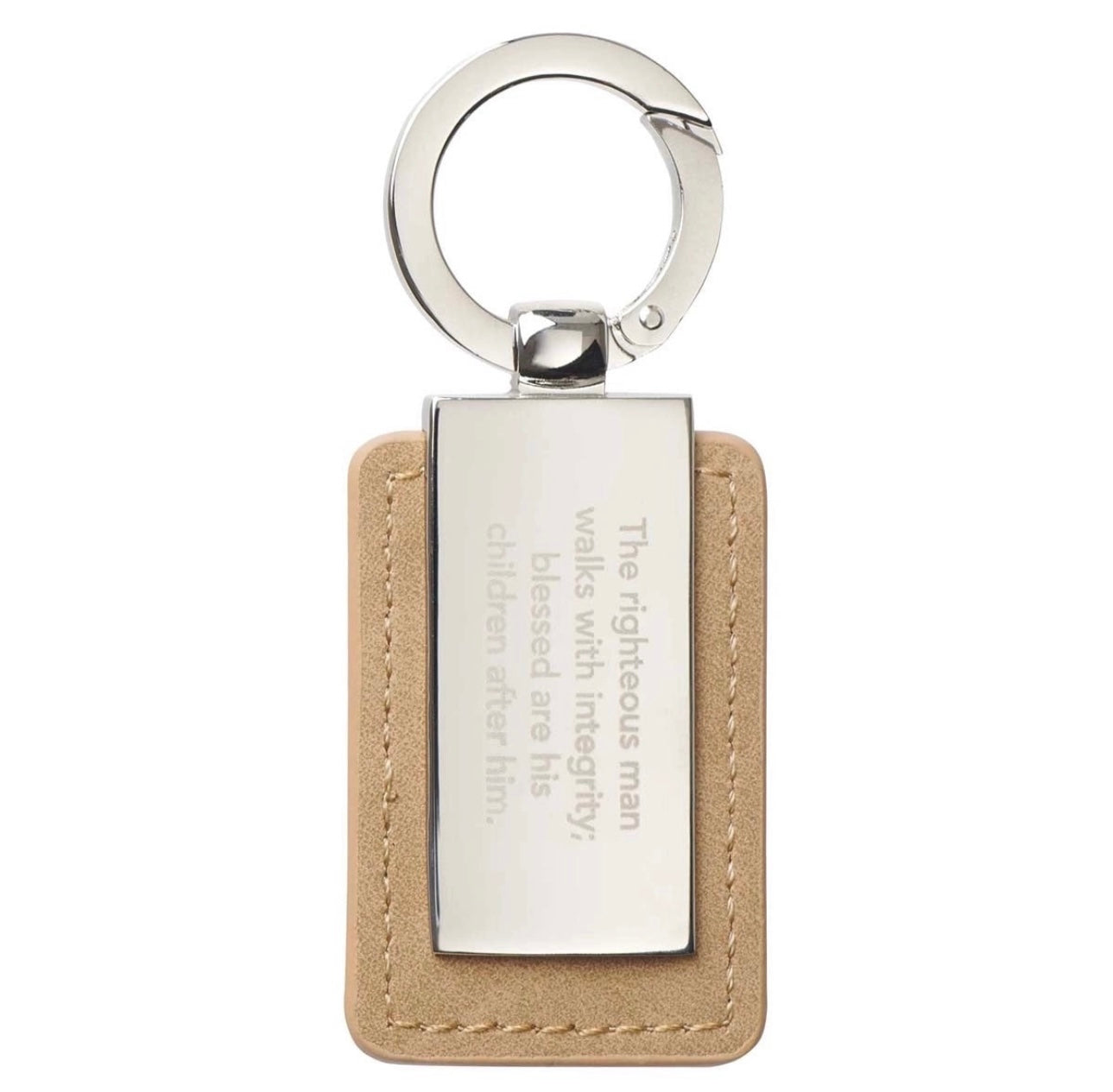 Llavero con metal y cuero con versiculo Biblico para Caballero